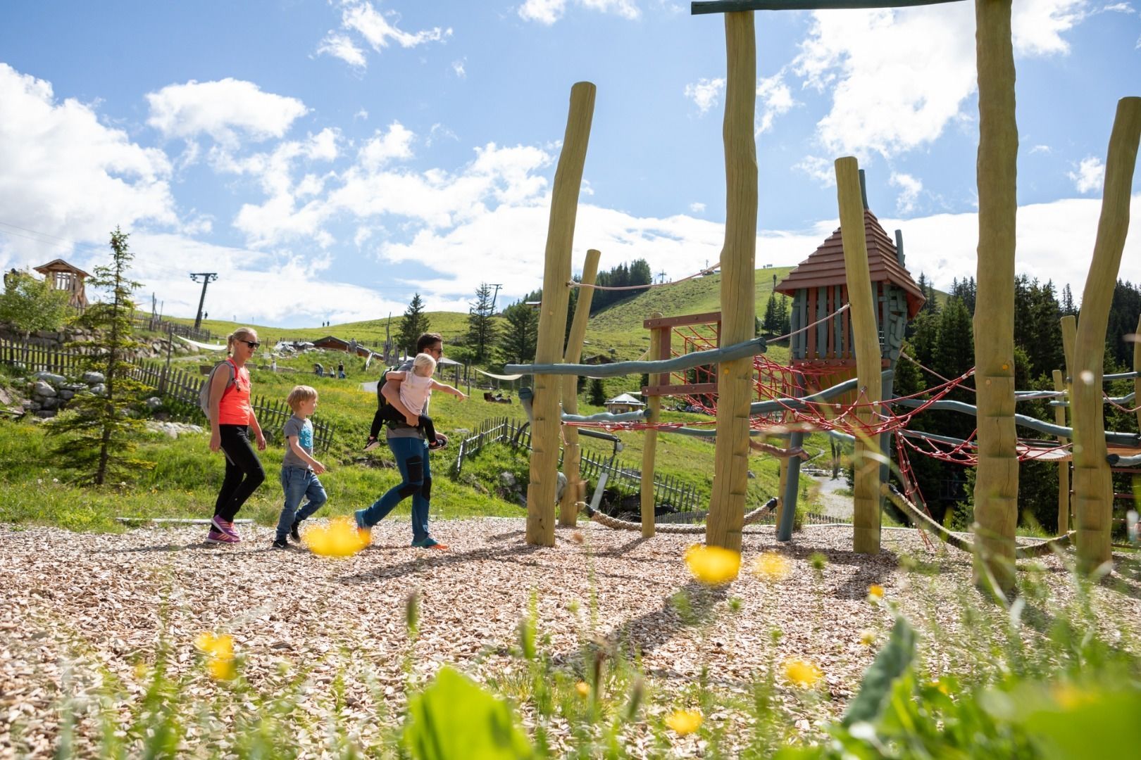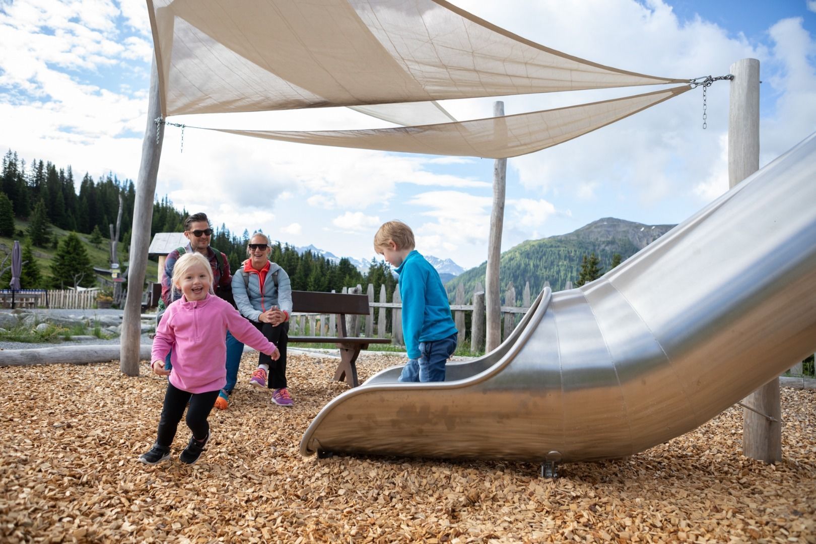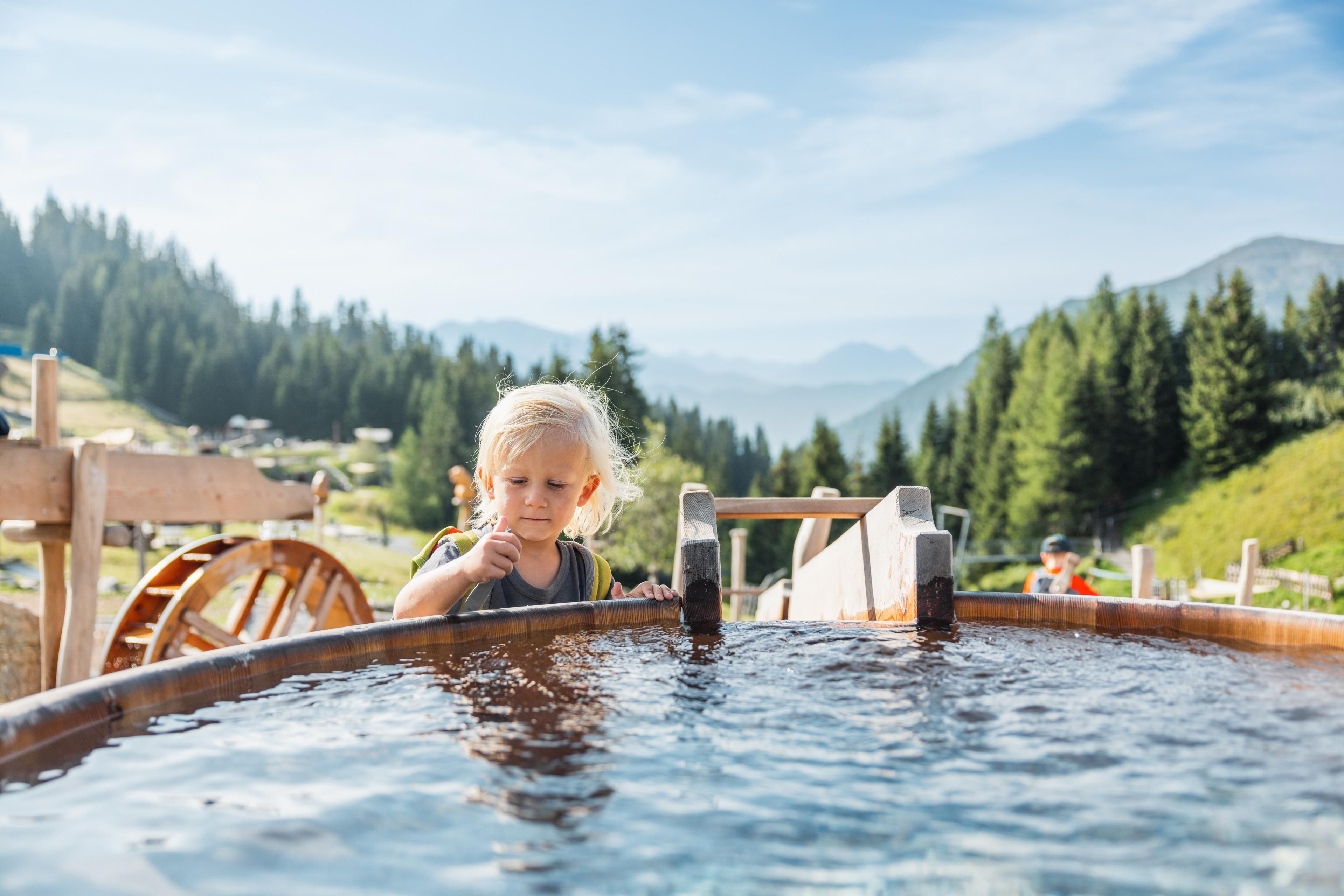 Witamy we wszechświecie świstaków! W interaktywnym Murmliwasser dzieci mogą szukać złota, wykopywać małe skarby, budować tamy i pluskać się do woli w wodnym lesie. Od 200-metrowej jaskini świstaka po wieżę z kulkami - chichotanie, ślizganie się i oczywiście zdumienie!