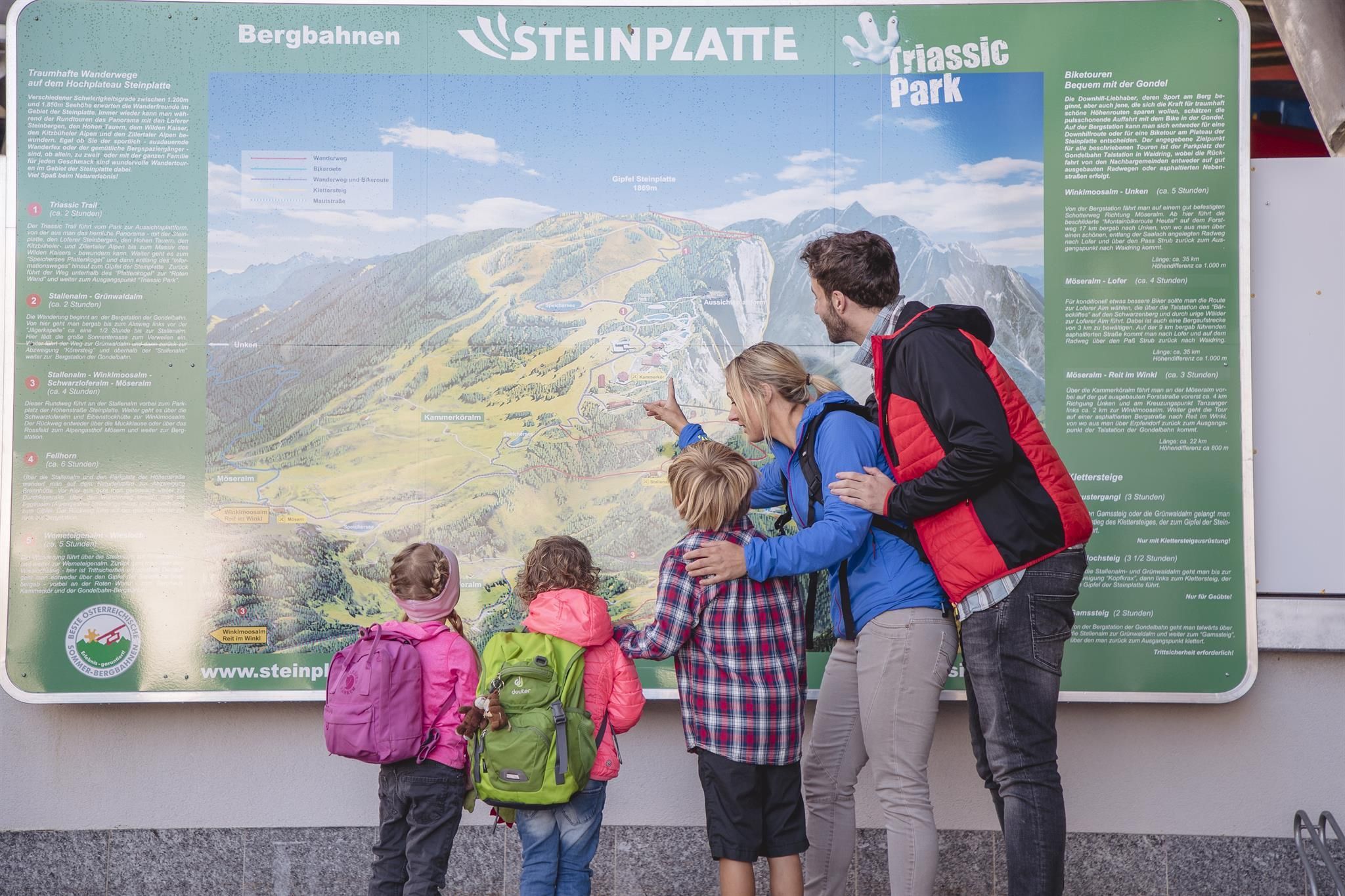 Lato: RAUF IN DIE URZEIT - podróż do dawno minionego świata! Zobacz z bliska gady morskie i inne stworzenia sprzed ponad 200 milionów lat. Do gondoli - aż do czasów prehistorycznych! W interaktywnej wystawie przygodowej na około 400 m² powierzchni wystawienniczej odwiedzający mają okazję "podróżować" do fascynującego i dawno minionego świata. Dzięki bezpłatnemu wstępowi, zabawa i gry są gwarantowane, a ekscytująca wizyta w czasach prehistorycznych na Steinplatte jest gwarantowana dla całej rodziny.