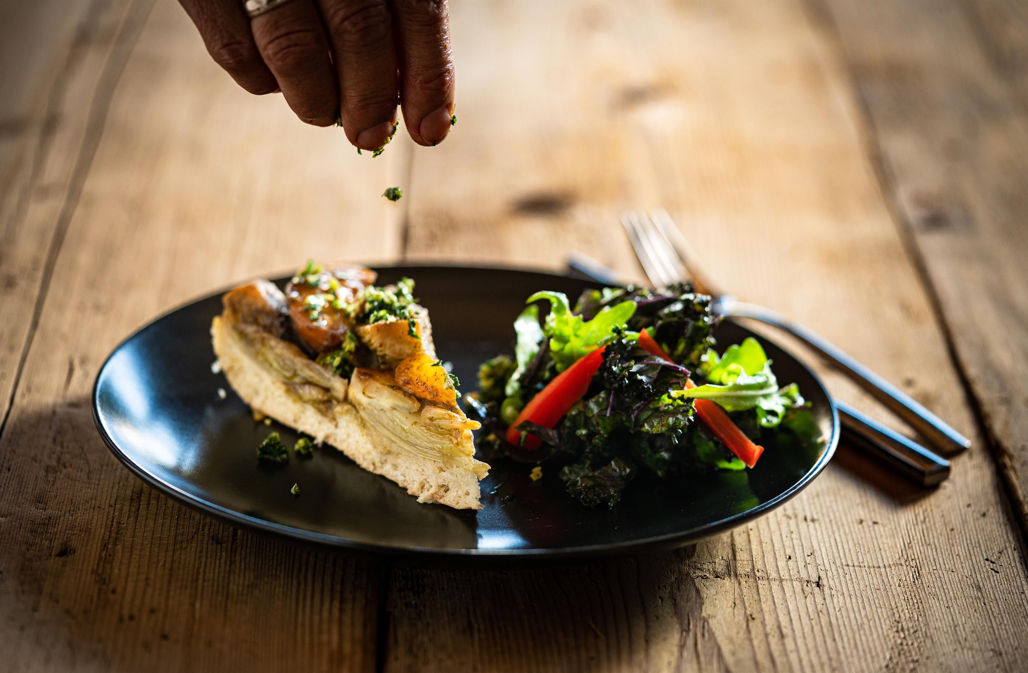 W restauracji serwowane są dania kuchni wegańskiej z lokalnych składników.