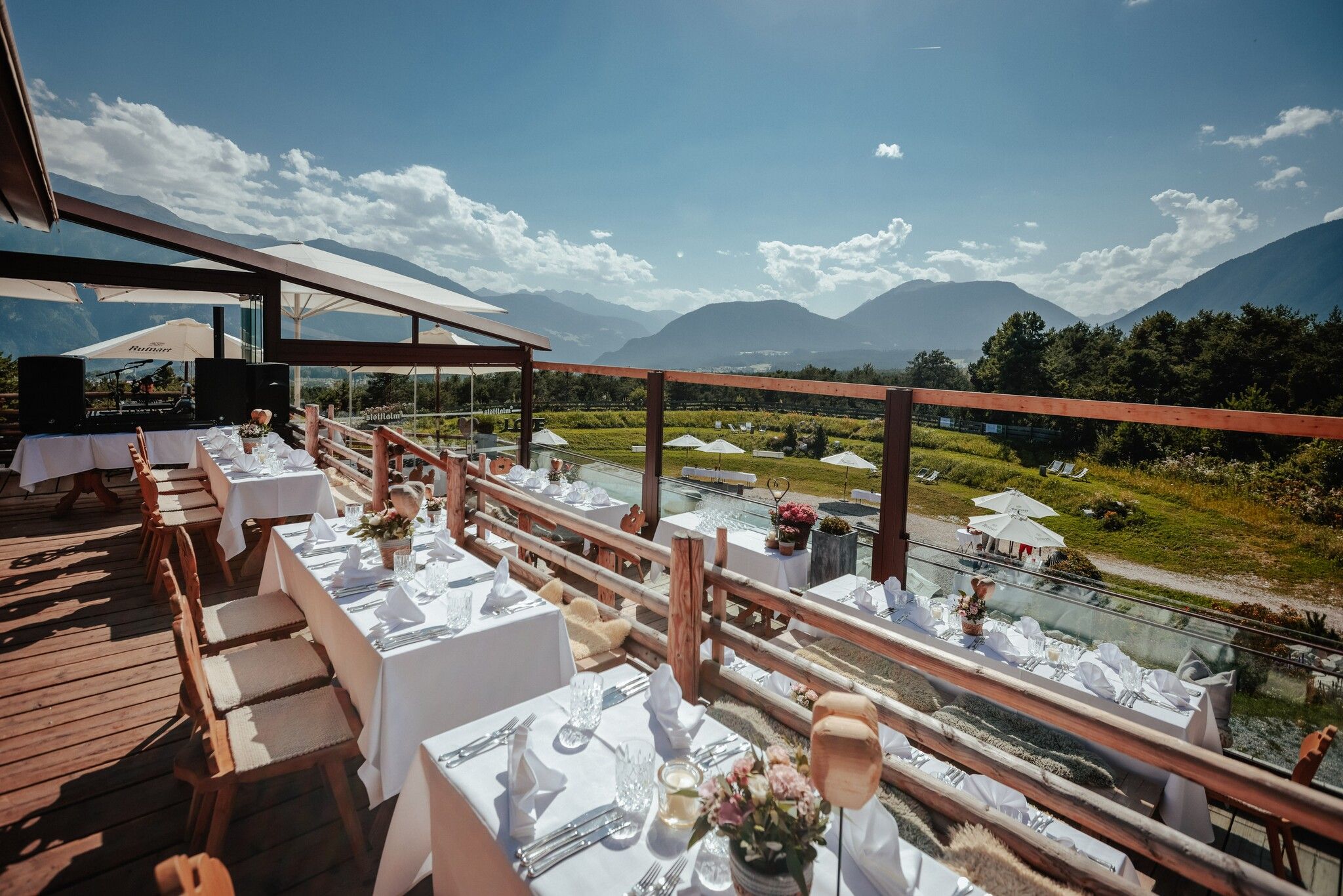 Stöttlalm znajduje się na wysokości 980 metrów nad poziomem morza i jest rustykalną chatą z fantastycznym panoramicznym widokiem na płaskowyż Mieminger i dolinę Inntal aż do Innsbrucka. Znajduje się na polu golfowym Mieming i nie jest schroniskiem alpejskim w tradycyjnym tego słowa znaczeniu. Nie wypasa się tu owiec ani bydła, ale okolica jest idylliczna. Jedną z zalet lokalizacji na polu golfowym jest to, że nie jest wymagana męcząca wędrówka, aby dotrzeć do Stöttlalm, ale latem nadal można cieszyć się obfitą domową kuchnią i wieczorami przy grillu. Po wcześniejszej rezerwacji serwowane są również alpejskie śniadania i brunche .