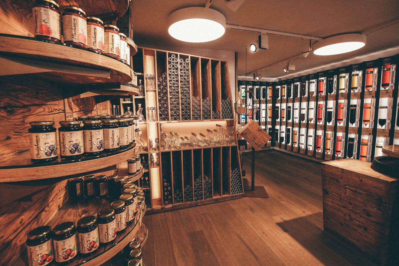 W prawie równie starym budynku naprzeciwko znajduje się s'Ladele - gdzie można spróbować wyśmienitych sznapsów, likierów, syropów, miodu, ręcznie robionej czekolady i dżemów. Wszystkie produkty pochodzą z północnego, wschodniego i południowego Tyrolu. "Możesz tam po prostu pójść i spróbować wyjątkowych rzeczy", mówi Eva, "to nie jest jak w supermarkecie, po prostu idziesz i cieszysz się".