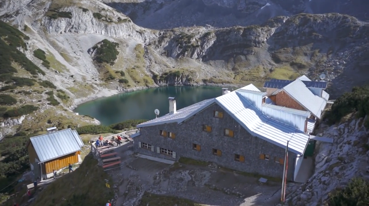 Coburger Hütte (1 920 m n.p.m.) to schronisko górskie DAV w paśmie górskim Mieminger nad jeziorem Drachensee.