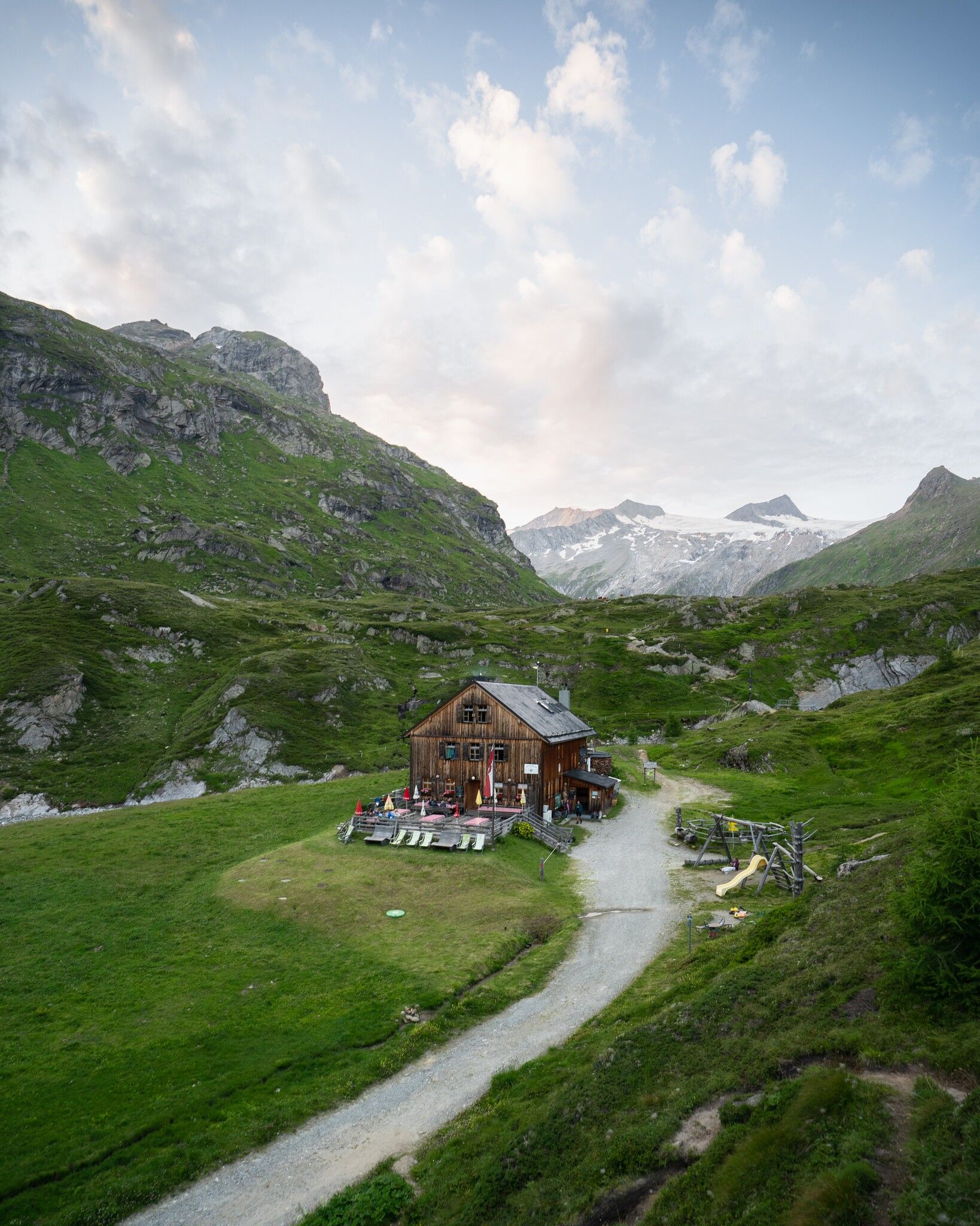 Umiarkowanie trudna wędrówka przez łąkę Edelweiss do Äußere Steiner Alm i bardziej stromą ścieżką do Sudetendeutsche Hütte. Jeśli jesteś pewny siebie i masz głowę do wysokości, zdecydowanie powinieneś zrobić objazd do Großer Muntanitz (3,232 m).