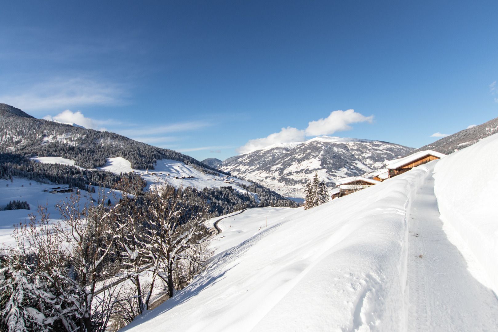 Winterwanderung zum Dorfberg in OsttirolGodziny otwarcia: otwarty Stopień trudności: trudny Długość: 12,0 km Długość: 5:00 h Ilość metrów przewyższena do góry: 680 m Do zimowej wędrówkiDo zimowej wędrówki: Winterwanderung zum Dorfberg in Osttirol